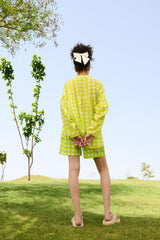 The Lolo Co-ord Set is crafted from our linen cotton fabric. It includes a button down top in our Lemon Checks print paired with our leisure shorts.