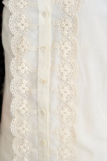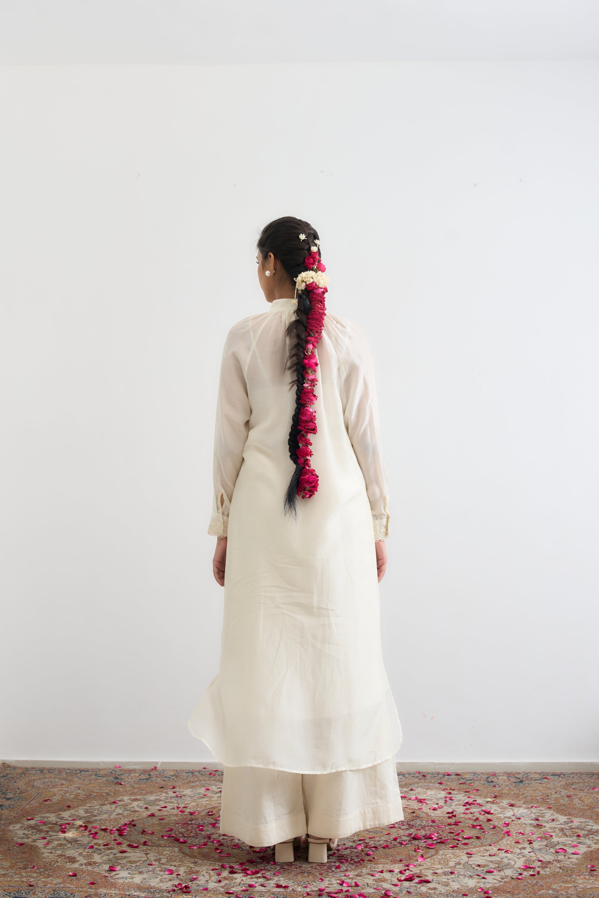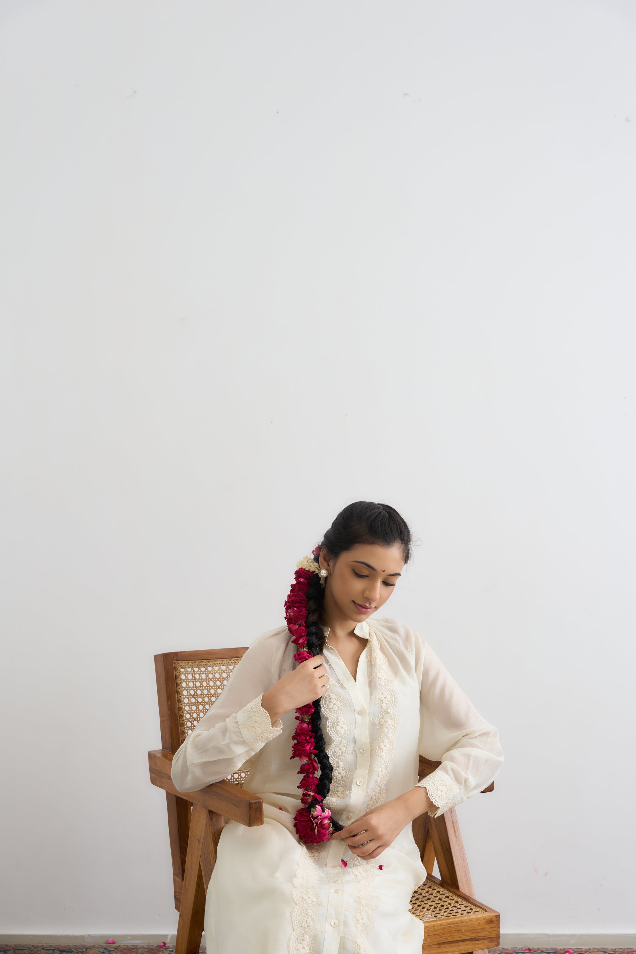 Classic & timeless, this heer coord set is crafted from cotton silk fabric with front lace detailing paired with flared pants.
