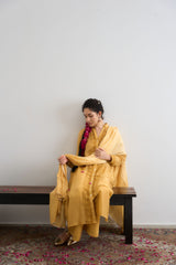 The cotton silk full size dupatta is dip dyed in ombre colour with cut dana lace detailing.