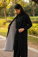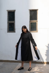 The alaska jacket is crafted from our merino wool fabrication. It is a A line jacket with pockets.