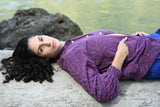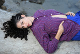 Handwoven indigo dyed kantha jacket with elasticated collar, pocket & cuff detailing