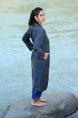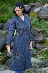 Handwoven zari embroidered trench coat with pockets