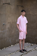 The shirt is crafted from linen cotton fabrication with shell button detailing.