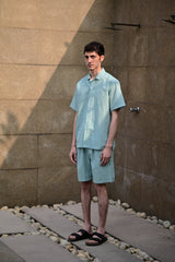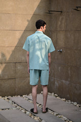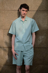The shirt is crafted from linen cotton fabrication with shell button detailing.
