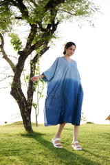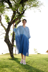 The Angela relaxed fit Kaftan is crafted with checkered cotton fabric with ombre azo free dyeing in the shades of summer.