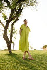 The Chamomile Kaftan Dress is crafted from our linen cotton fabrication with pockets making it perfect for hot summer days.