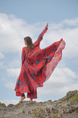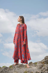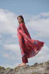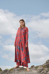 The Laxmi maxi dress is crafted from our vegan silk fabrication in our Daal Print. It has gather detailing in the neck along with chudidaar sleeves. We've paired this with our wide leg Urvi trouser.