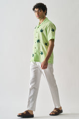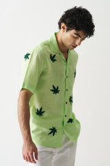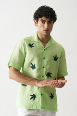 Elevate your style with our half sleeve linen shirt. Hand-embroidered cannabis leaves add a unique, nature-inspired touch to this classic piece. Explore comfort, style, and a dash of the extraordinary in one distinctive shirt.