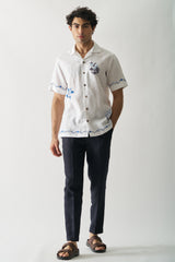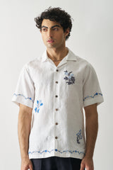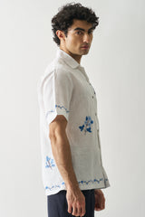 Embrace the beauty of nature with this hand-embroidered masterpiece, featuring delicate flowers in a harmonious blend of light and dark blue. Elevate your style with this timeless and elegant piece.