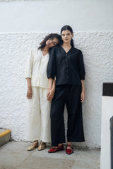Missu shirt is made from our yarn dyed linen cotton fabrication, a short sophisticated V neck blouse with a delicate sleeve.
