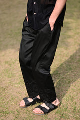 The trouser is crafted from linen cotton fabrication with hem dori embroidered detailing.