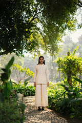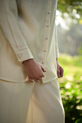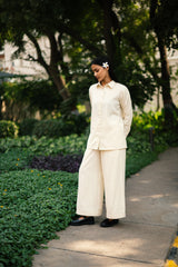 The mahonia co-ord set is crafted from our merino wool fabrication with faggoting detailing & embroidered buttons.