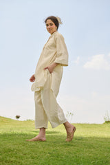 The Nargis Co-ord Set is crafted from our linen cotton high low tunic in our checkered cotton fabric with our balloon paneled pants.